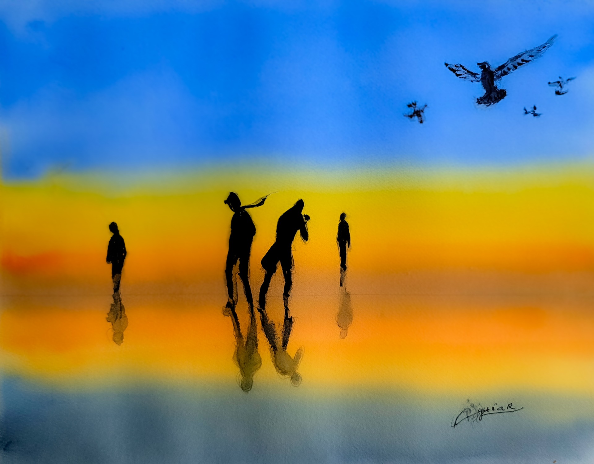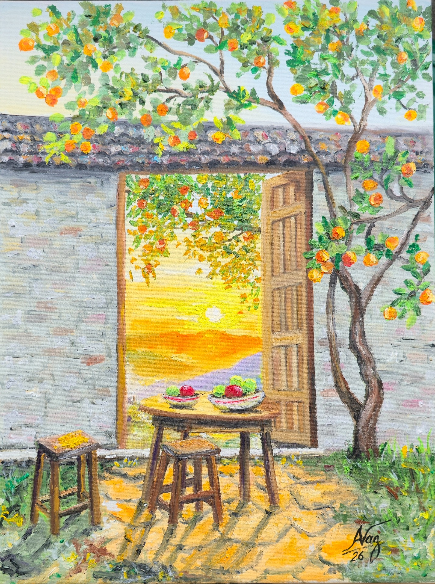 Assim sendo, proponho um novo desafio de pintura com o tema "A Luz do Amanhecer / Entardecer".