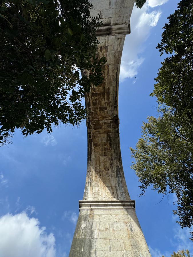 túnel que circunda o palco dum teatro romano em Cádiz. A luz fez estes belos