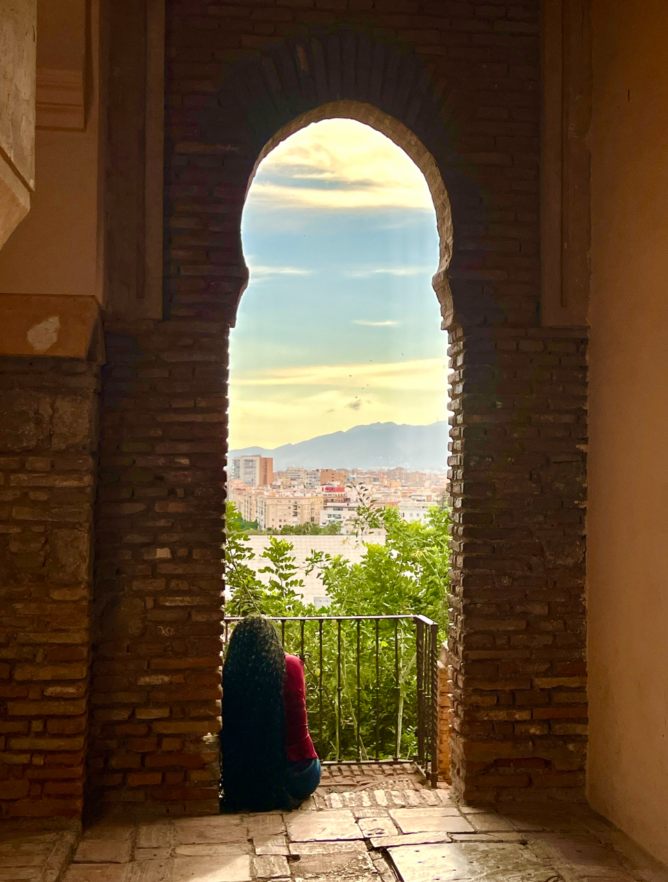 Algures no interior da Alcazaba, em Málaga. Ao fundo vê-se Málaga. A