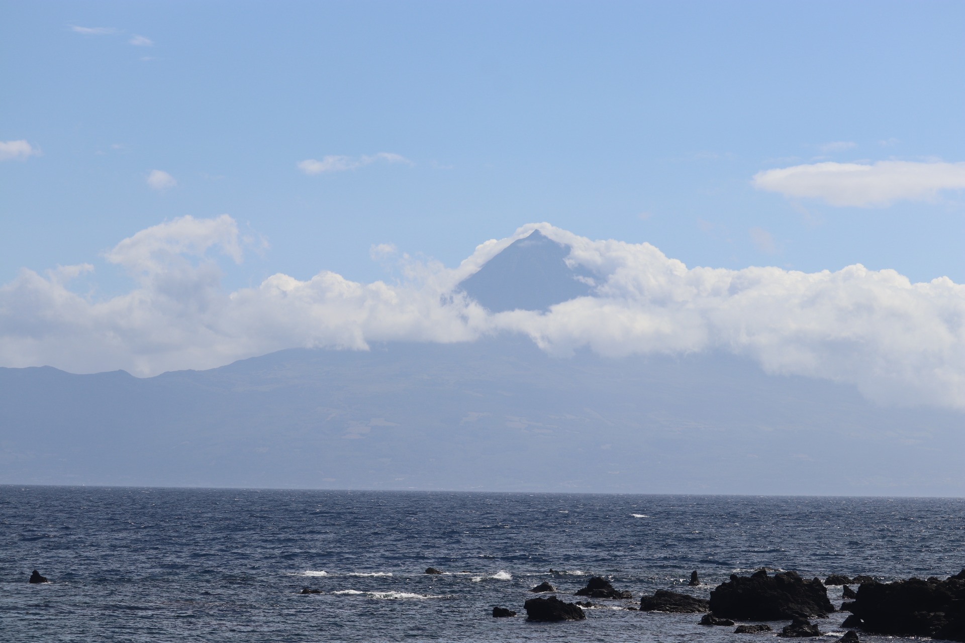 montanha da ilha do Pico, com o Piquinho emoldurado pelas nuvens