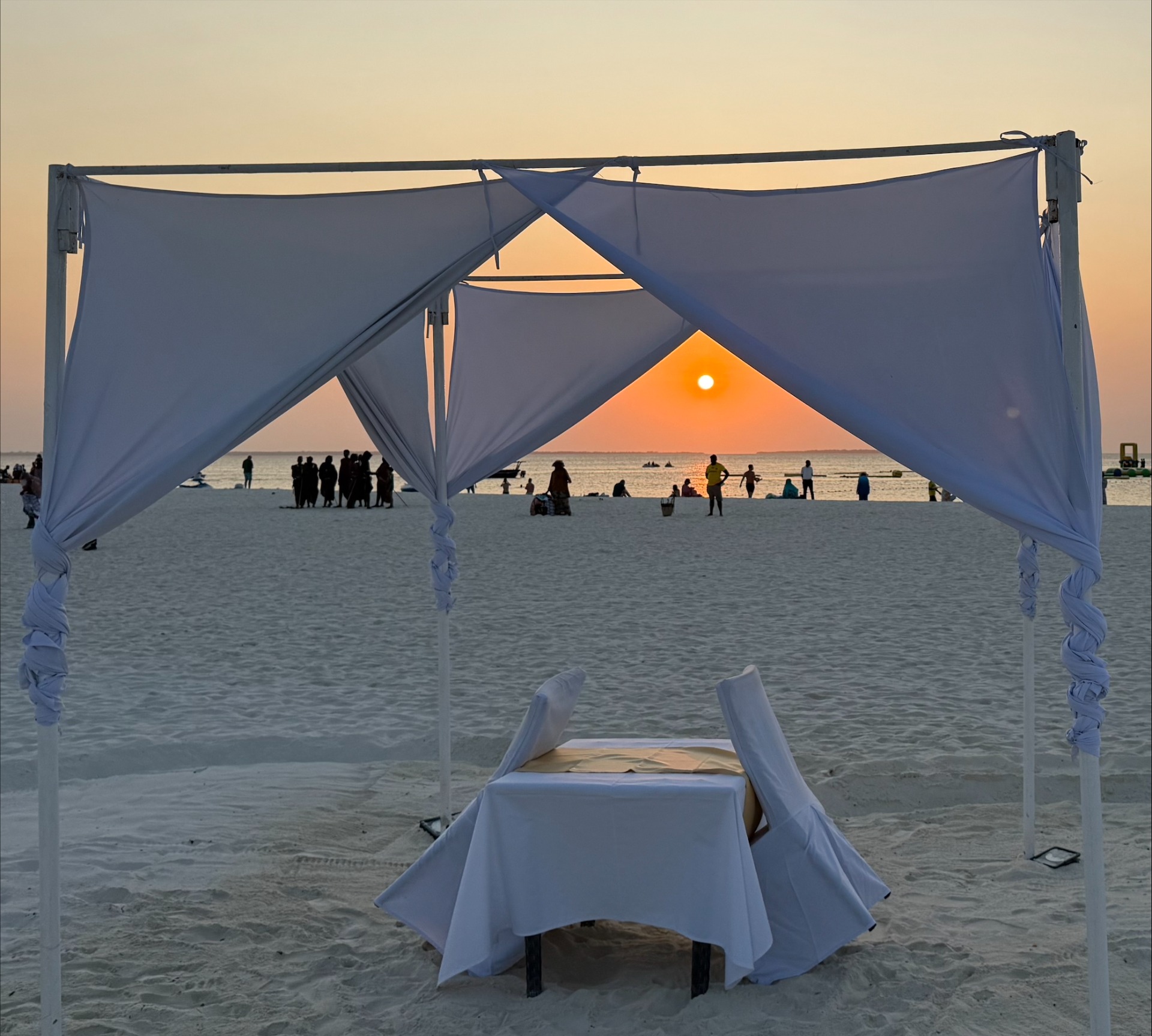 neste caso é uma construção na praia para jantares românticos, enquadra o sol, minutos antes de se pôr no mar e ajuda a focarmos no que queremos captar - que