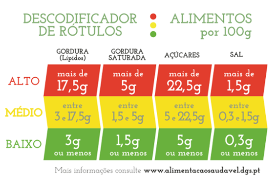 O Descodificador de Rótulos, frequentemente chamado de semáforo alimentar, é uma ferramenta criada pelo Programa Nacional de Promoção da Alimentação Saudável (PNPAS) para ajudar a tomar decisões rápidas e saudáveis.