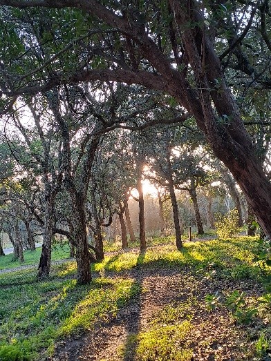 As árvores que falam através do vento que lhes passa pelas folhas.