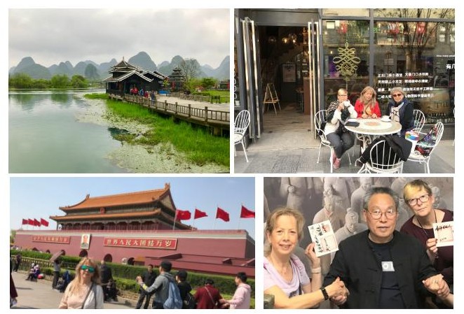 No dia 1 de Abril fomos de comboio para Guilin, onde ficámos dois dias. É uma pitoresca cidade medieval, rodeada de montanhas cársticas, cobertas de vegetação luxuriante, banhada por vários rios e terraços de arroz. Ficámos no Guilin Riverside Hostel. Bem charmoso, à beira dum rio. Da janela do nosso quarto, que dava para o rio, acordávamos de manhã, com uma suave música chinesa e um pequeno grupo de mulheres a fazer Tai-Chi, à beira do rio.