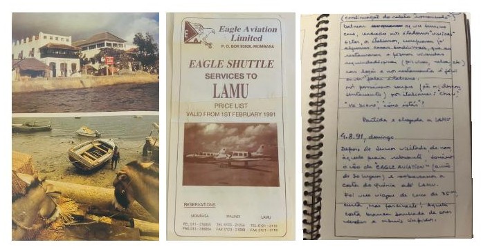 Hoje voltei a Lamu onde cheguei provinda de Malinde, depois de uma viagem inigualável num pequeno avião de 30 lugares e de uma curta travessia num barco à vela tradicional, os dhow, manejado pela experiência de quem sabe que ali fica o melhor pedaço do mundo.