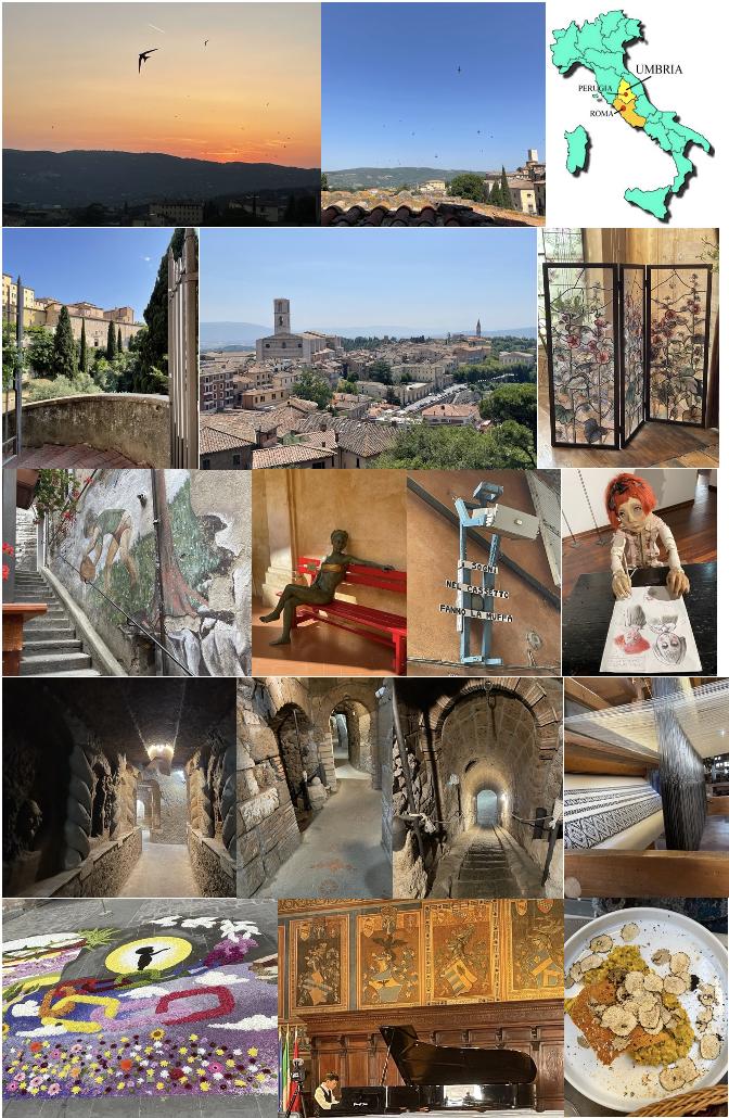 Viajei no verão passado para mais um ponto de Itália, que ainda me era desconhecido, a Perugia, mesmo no centro, no coração do país, em plena Umbria. Para além dos já habituais monumentos e história que Itália oferece, encontrei um centro de cultura com muitos museus contemporâneos, muitos eventos musicais, tecelagem e vidraria, muita vida de rua, arte urbana, novidades gastronómicas, vistas maravilhosas, de vários pontos da cidade, e proximidade, sempre a "uns passos" de comboio de outras cidades ou localidades que visitei neste período, alguns em plena época de festividades locais, como a festa das flores "L'infiorata" em Spello, uma procissão em Assis e um concerto na catedral de Orvieto, cidade que, tal como a Perugia, têm outra cidade, a antiga, ou parte dela, debaixo de chão, em grutas, ainda algo preservadas.